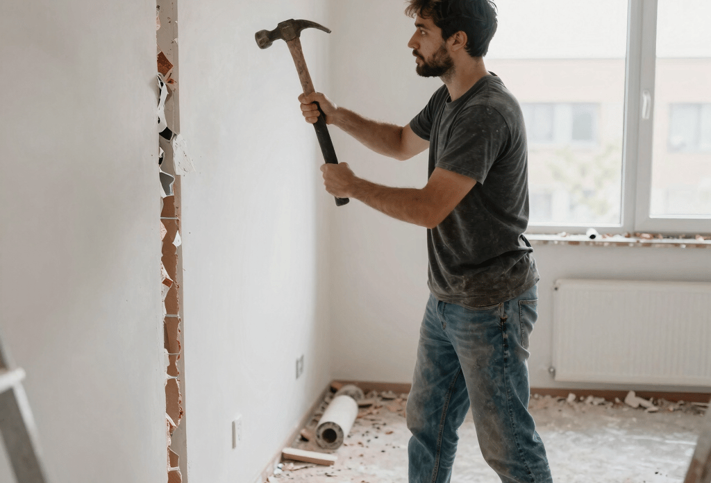 Dieser Prozess beinhaltet die Entfernung von nicht-tragenden Bauelementen wie Innenwänden, Bodenbelägen, Deckenverkleidungen, Sanitär- und Elektroinstallationen sowie anderen Ausstattungsgegenständen.